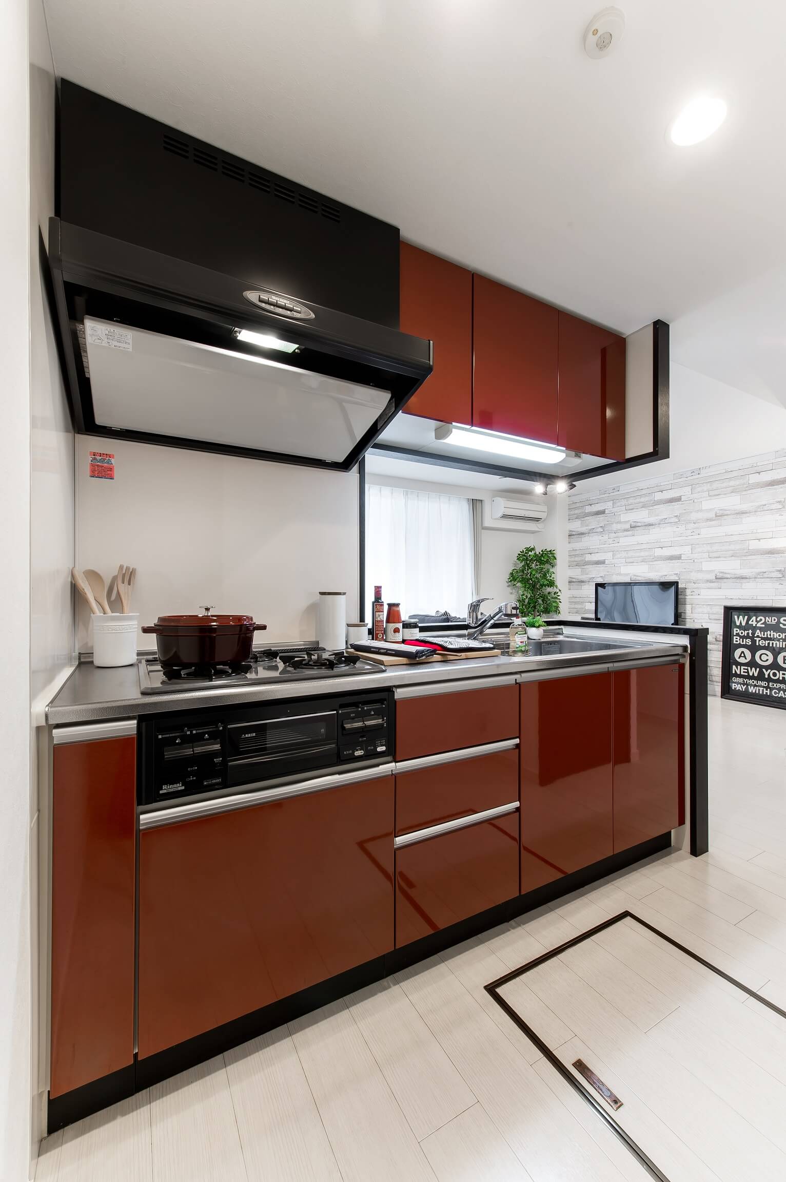 赤色の小物をアクセントに家具をセレクト。