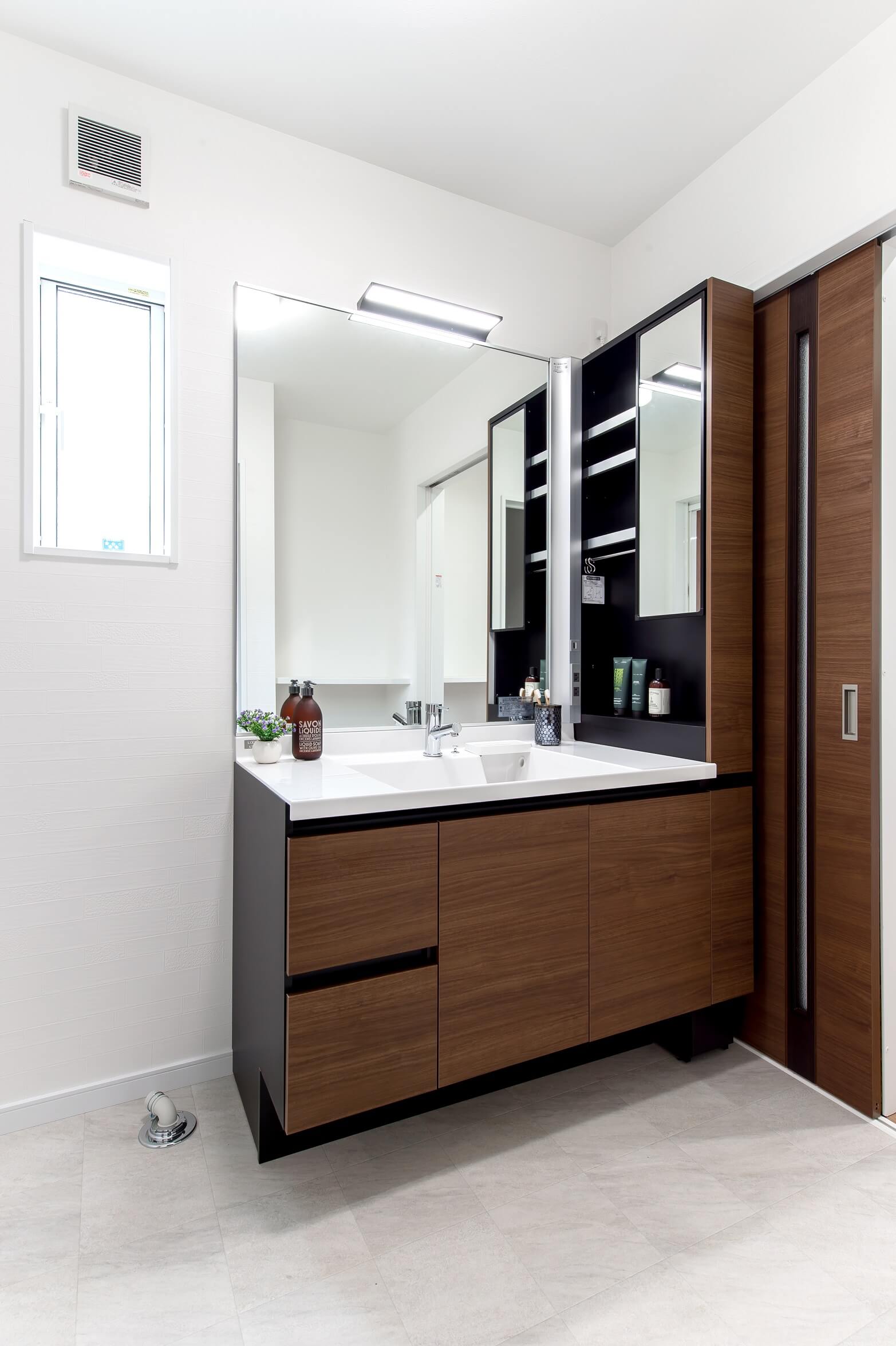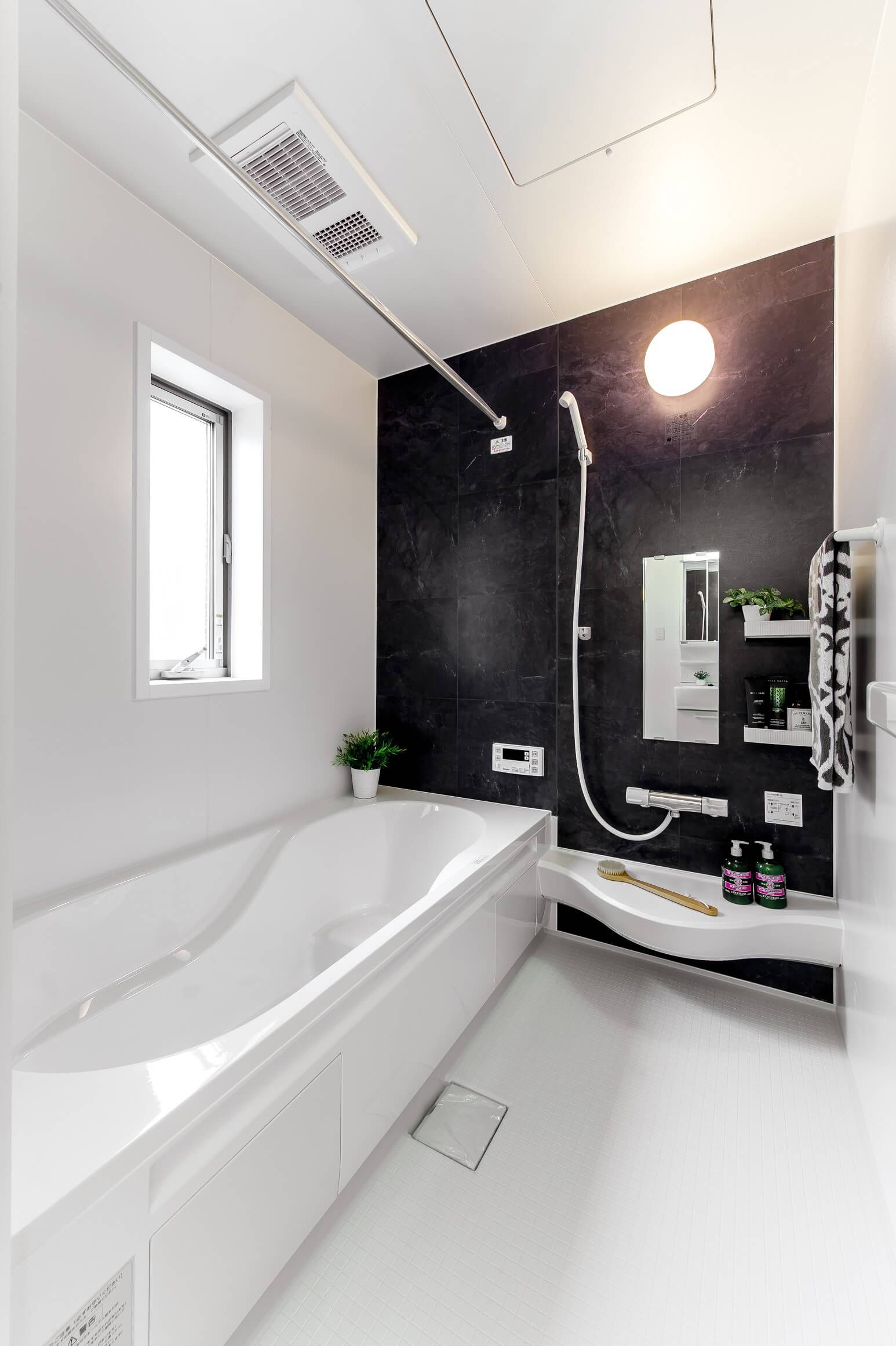 ステージング範囲:LDK、浴室、洗面室、トイレ、玄関に家具とインテリア雑貨、小物を設置。